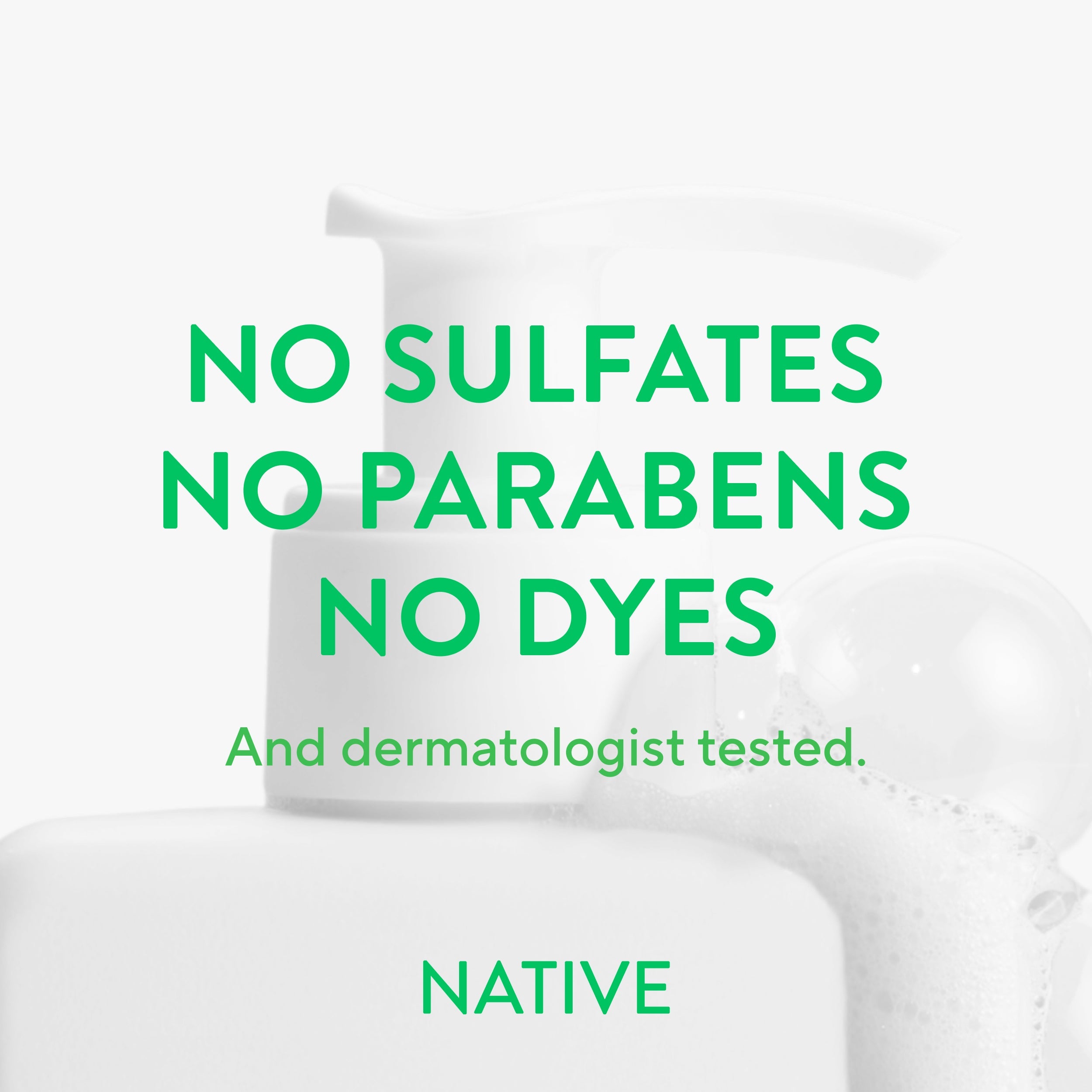No sulfates, parabens, or dyes. Fragrance free and derm tested.