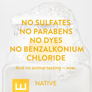 No sulfates, parabens, dyes, or benzalkonium chloride.