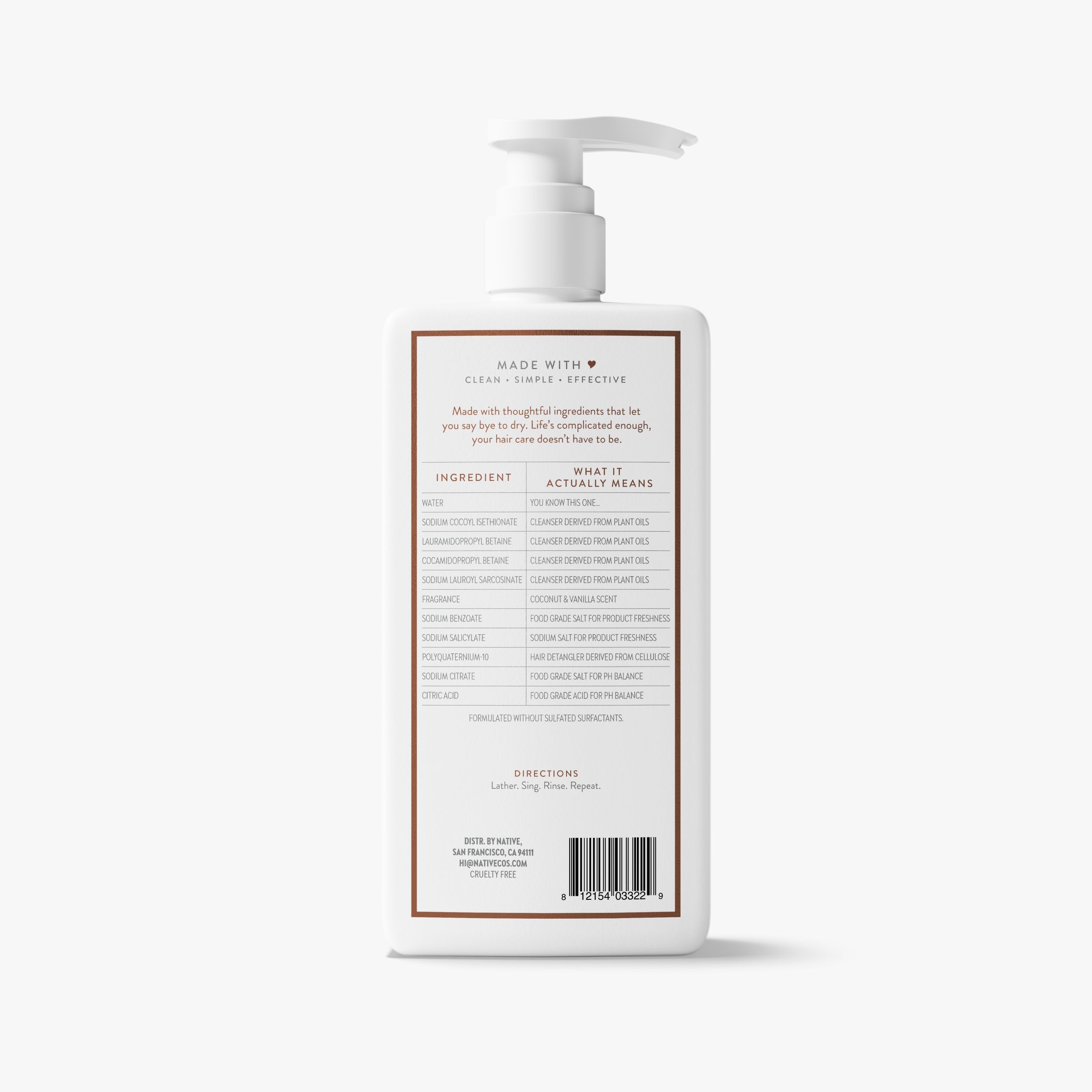 Thoughtfully formulated with no sulfates, silicones, parabens, or dyes.