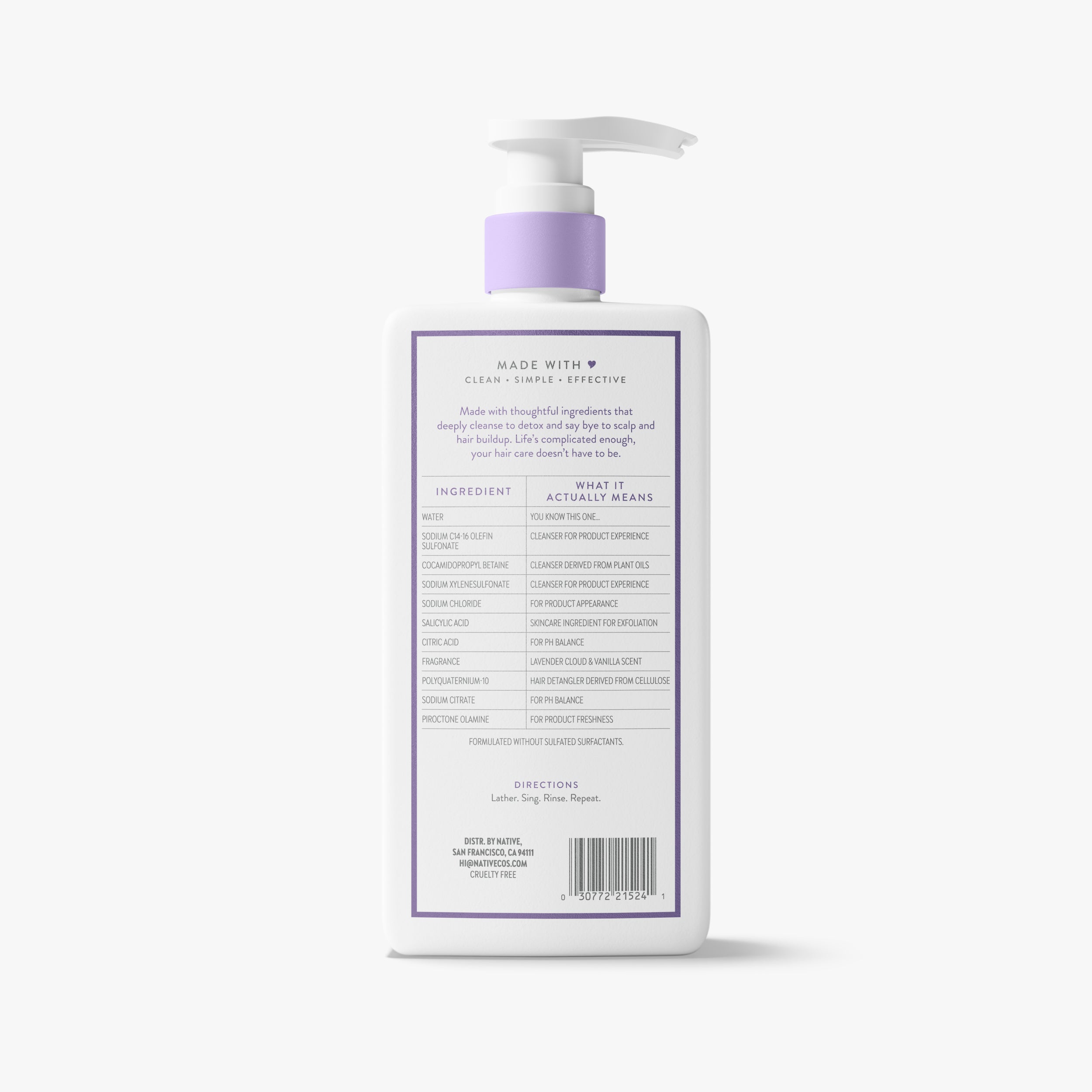 Thoughtfully formulated with no sulfates, silicones, parabens, or dyes.