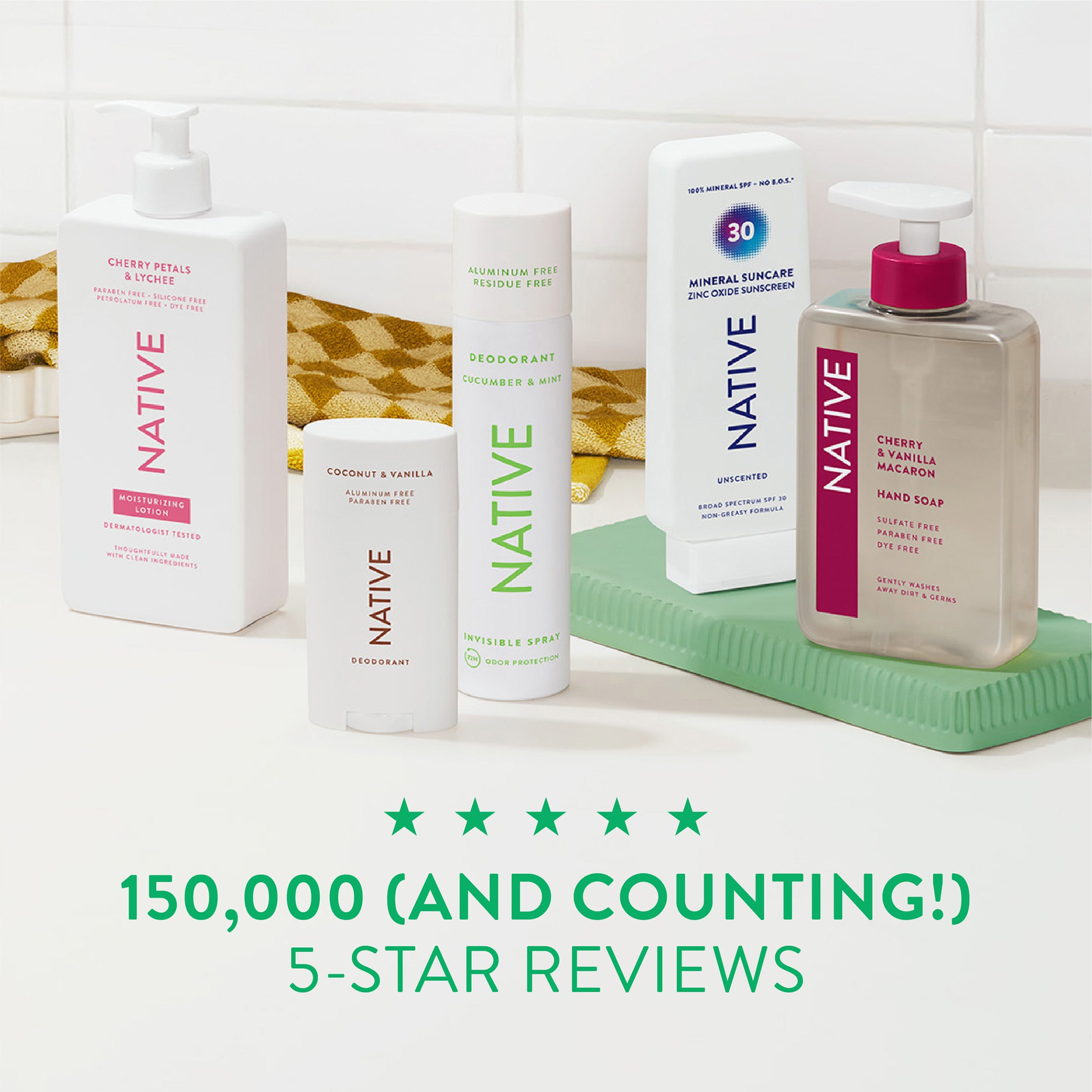 NEW & IMPROVED: Sun care is self-care and Native's new Mineral Sunscreen Lotion SPF 30 sets the bar. It's lightweight and non-greasy UVA/UVB protection without the chalky white cast. Dermatologist tested and suitable for sensitive skin.