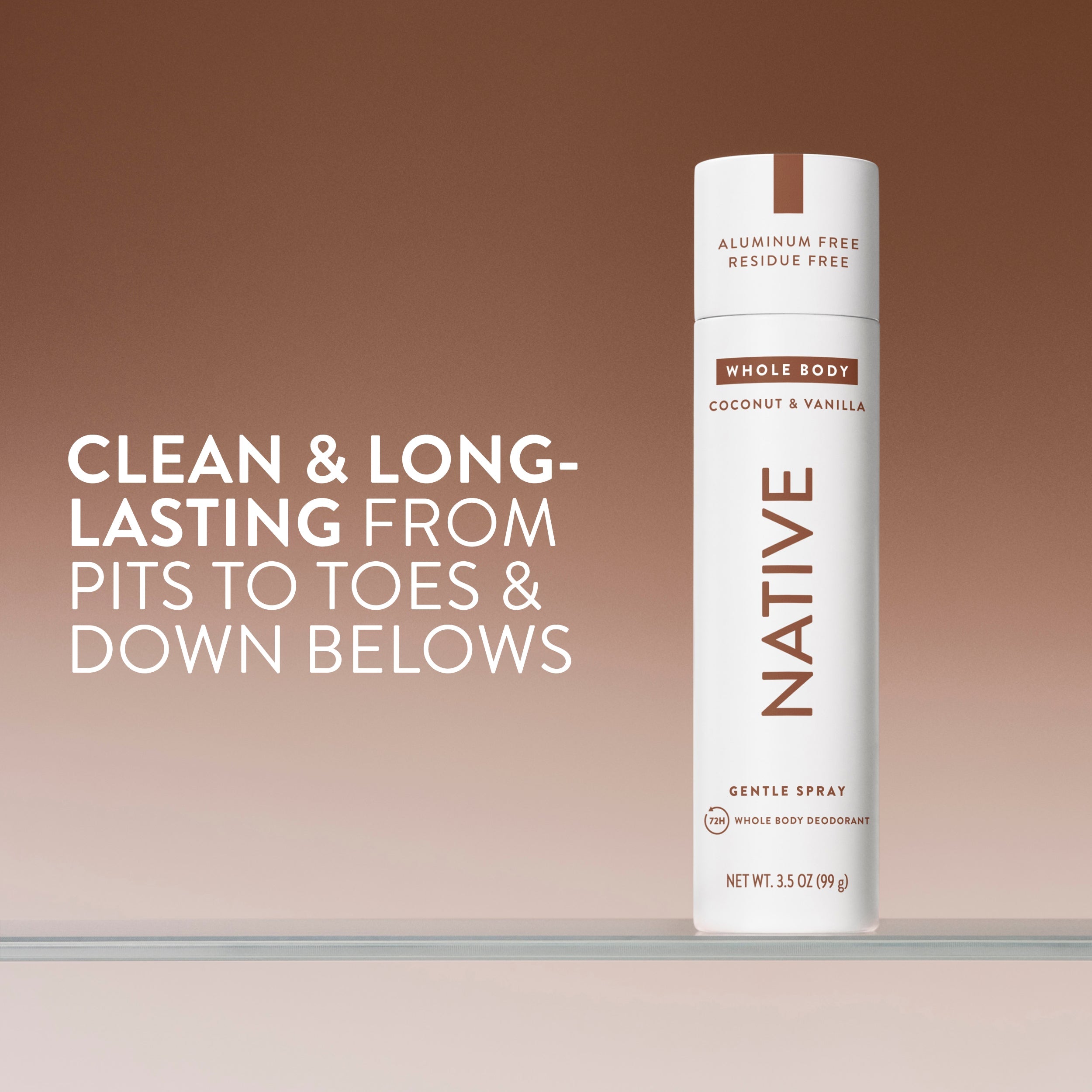 Fight odor all over. This lightweight, quick-drying deodorant spray keeps pits, toes, and down belows fresh for 72 hours. No white residue or aluminum cloud.