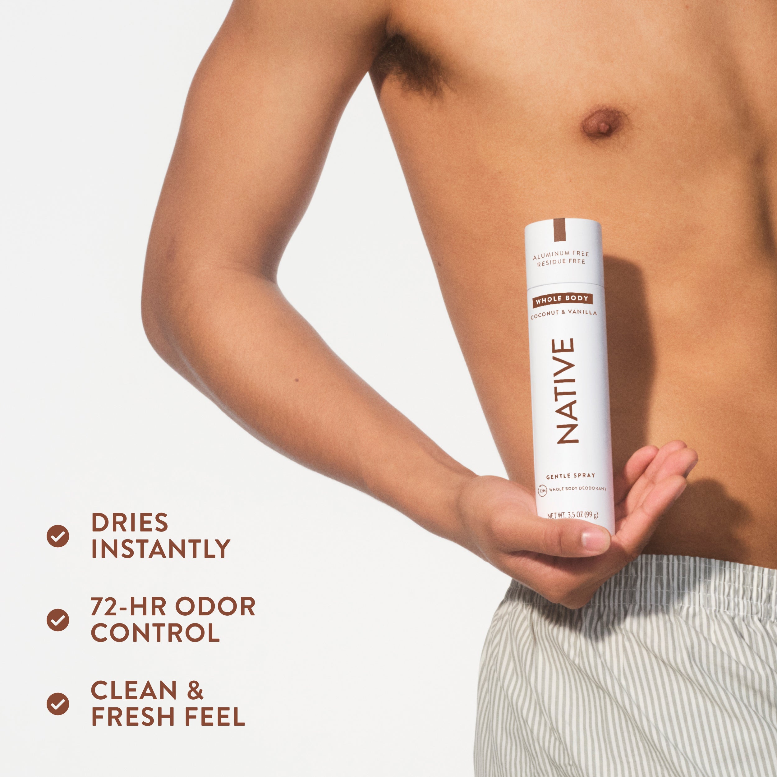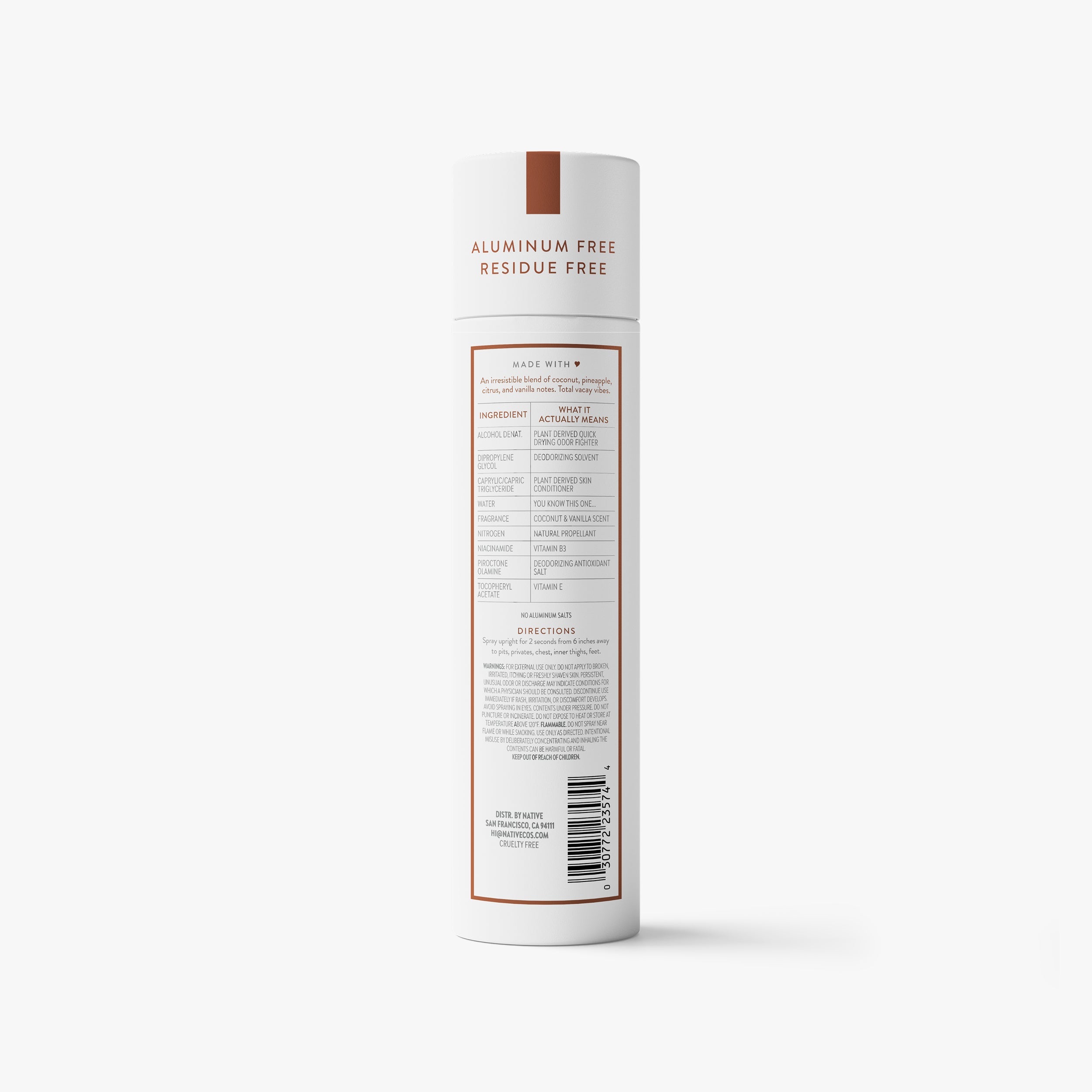 - No unwanted ingredients. Free of aluminum and chemical propellants. Quick drying and no white residue.